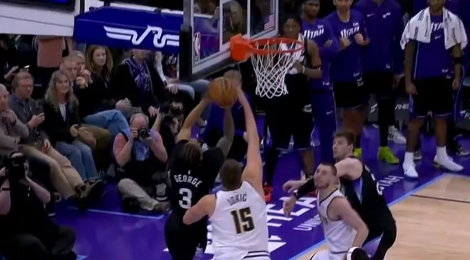 约基奇防乔治上篮领到第六犯,掘金关键挑战成功最终险胜